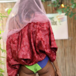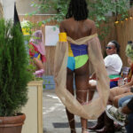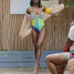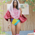 While the bodysuits remain structured through color blocking and defined prints, the added fabrics introduce movement and depth, softening the silhouettes and allowing them to shift between control and fluidity.